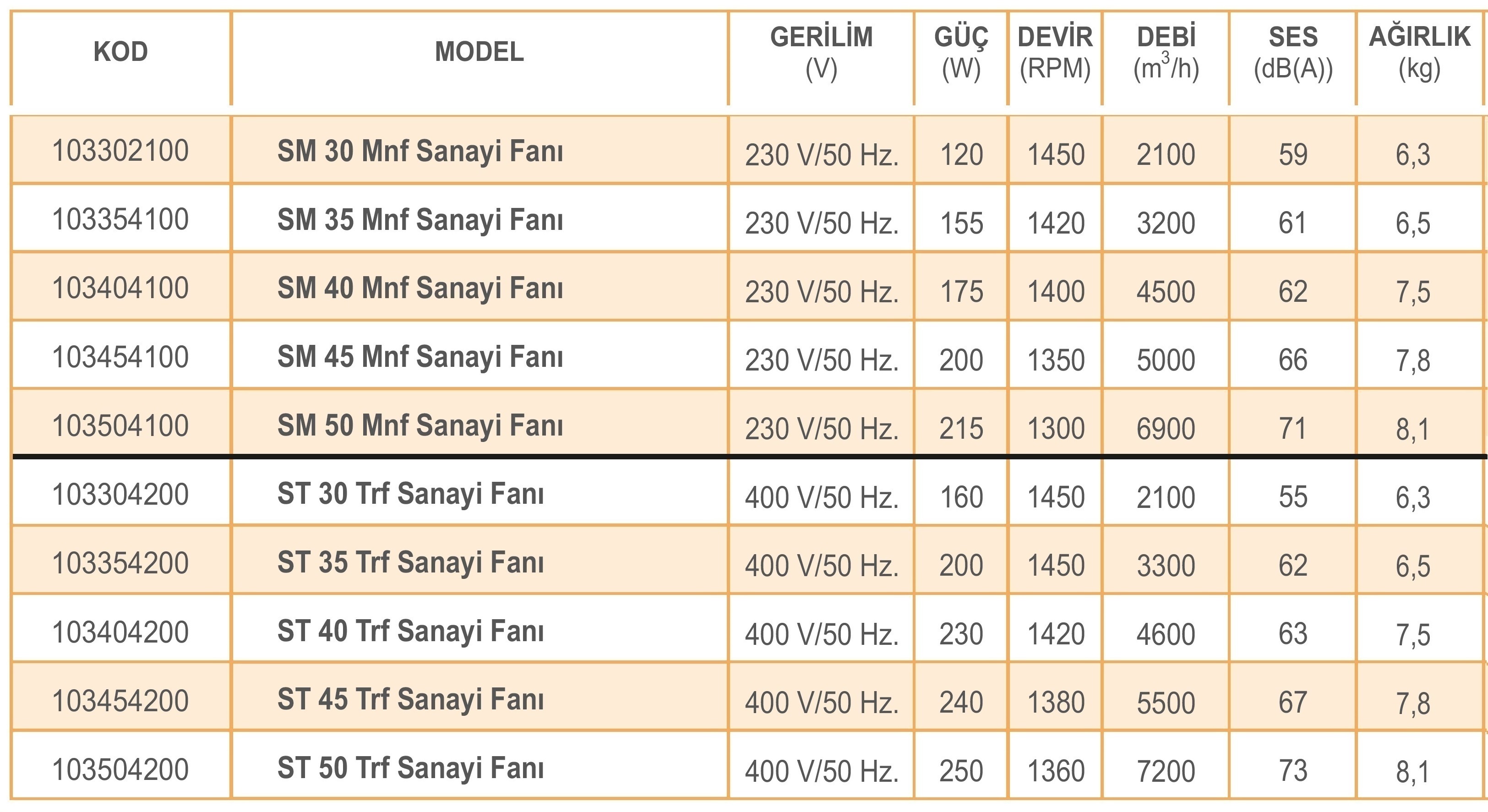 SM-T 30,35,40,45,50 SANAYİ FANLAR